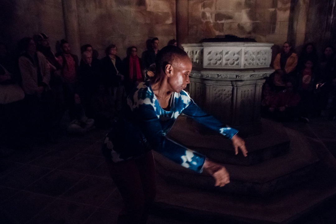 Weevers’s art aims to express the paradoxical nature of the human body—its vulnerability and its strength—and in her role as Mary, the actor in this video exemplifies both so well. Gloriously gravid and standing tall at first, the woman looks into the distance and sees the future suffering of her son. She clasps her belly protectively in response, hunching forward as the painful knowledge of his destiny shoots through her.