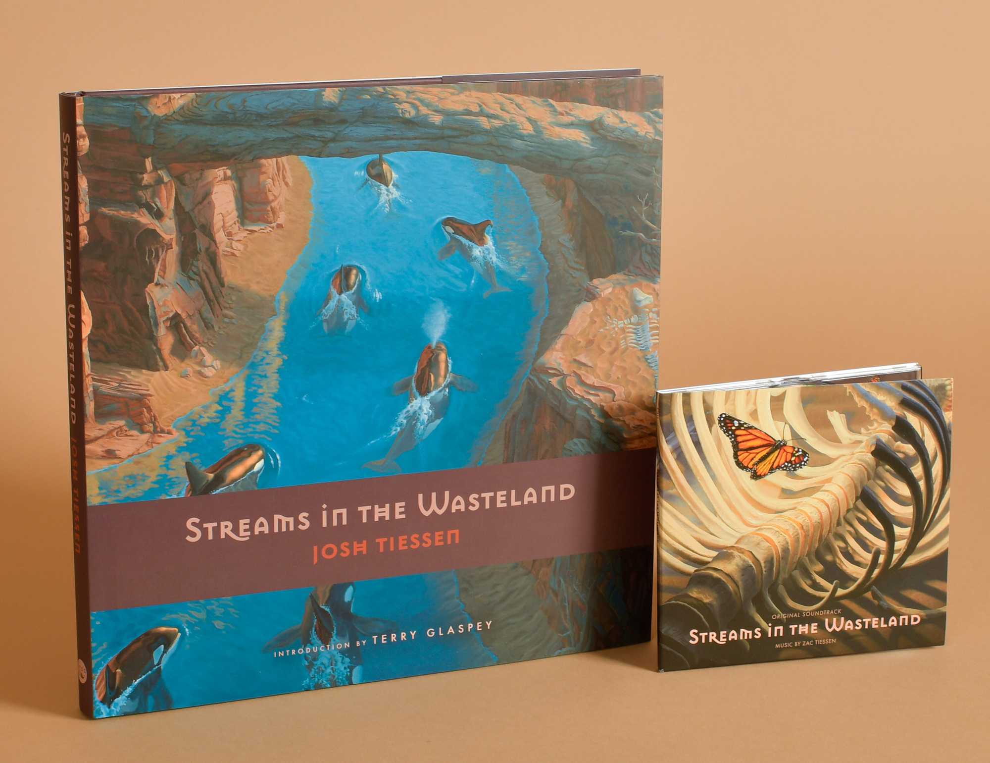 Tiessen has self-published a hardcover, glossy-paged, full-color book that collates all the works from Streams in the Wasteland, providing commentary on them (additional to that on his website), which includes engagement with scholarly interpretations of the Isaiah passages. Through sketches and more, he sheds light on his artistic process and also provides autobiographical information. The book comes with a CD of instrumental compositions by his brother Zac Tiessen that respond to each of the paintings—an atmospheric soundscape. It would make a great gift.