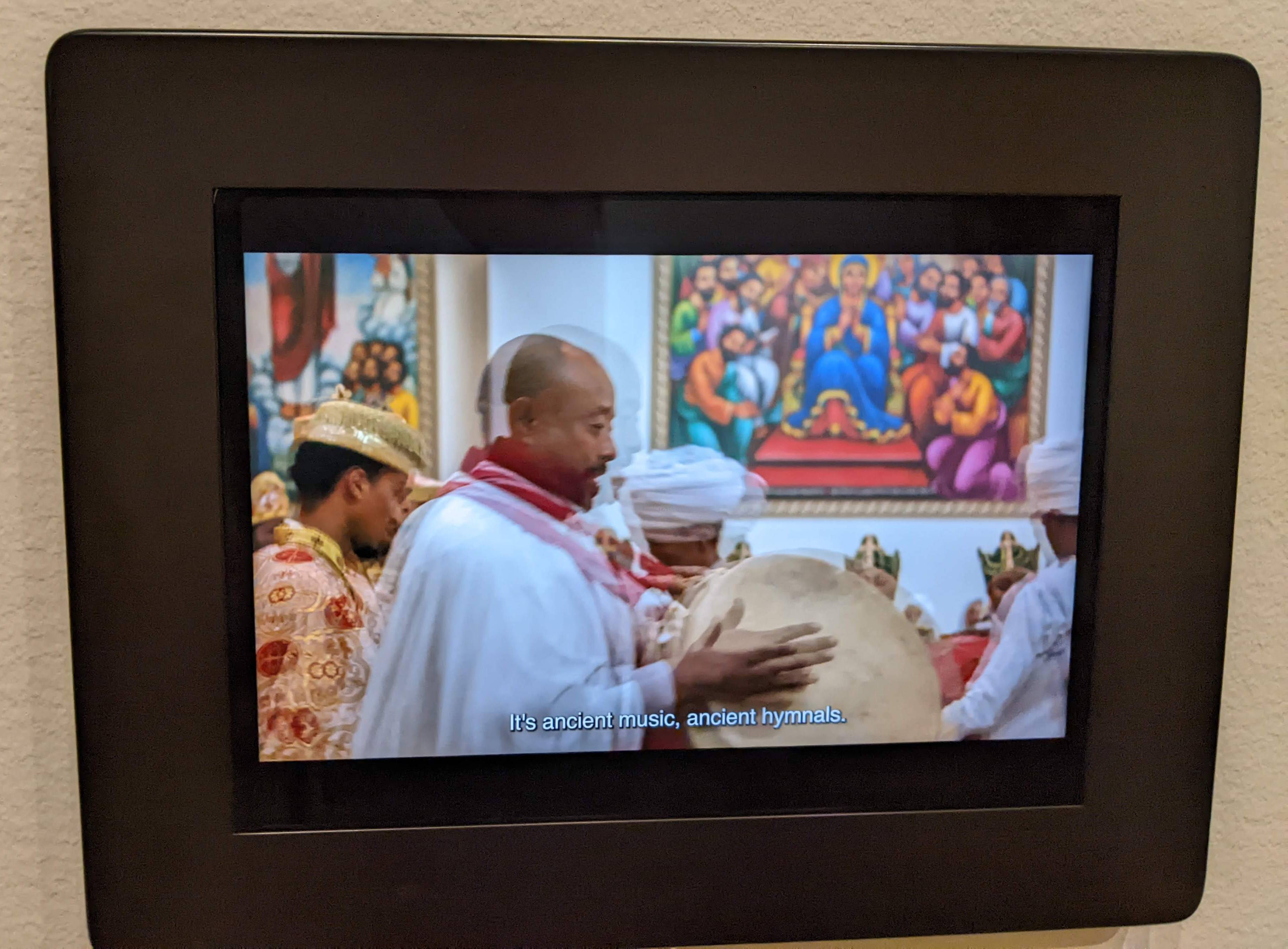 Also in the exhibition there are screens where you can watch videos of Ethiopian Orthodox worship, including music and liturgies, where you will see some of the objects in use. You can also listen to interviews with members of the local Ethiopian diaspora community. (The Washington metropolitan area has the largest Ethiopian population outside Ethiopia.)