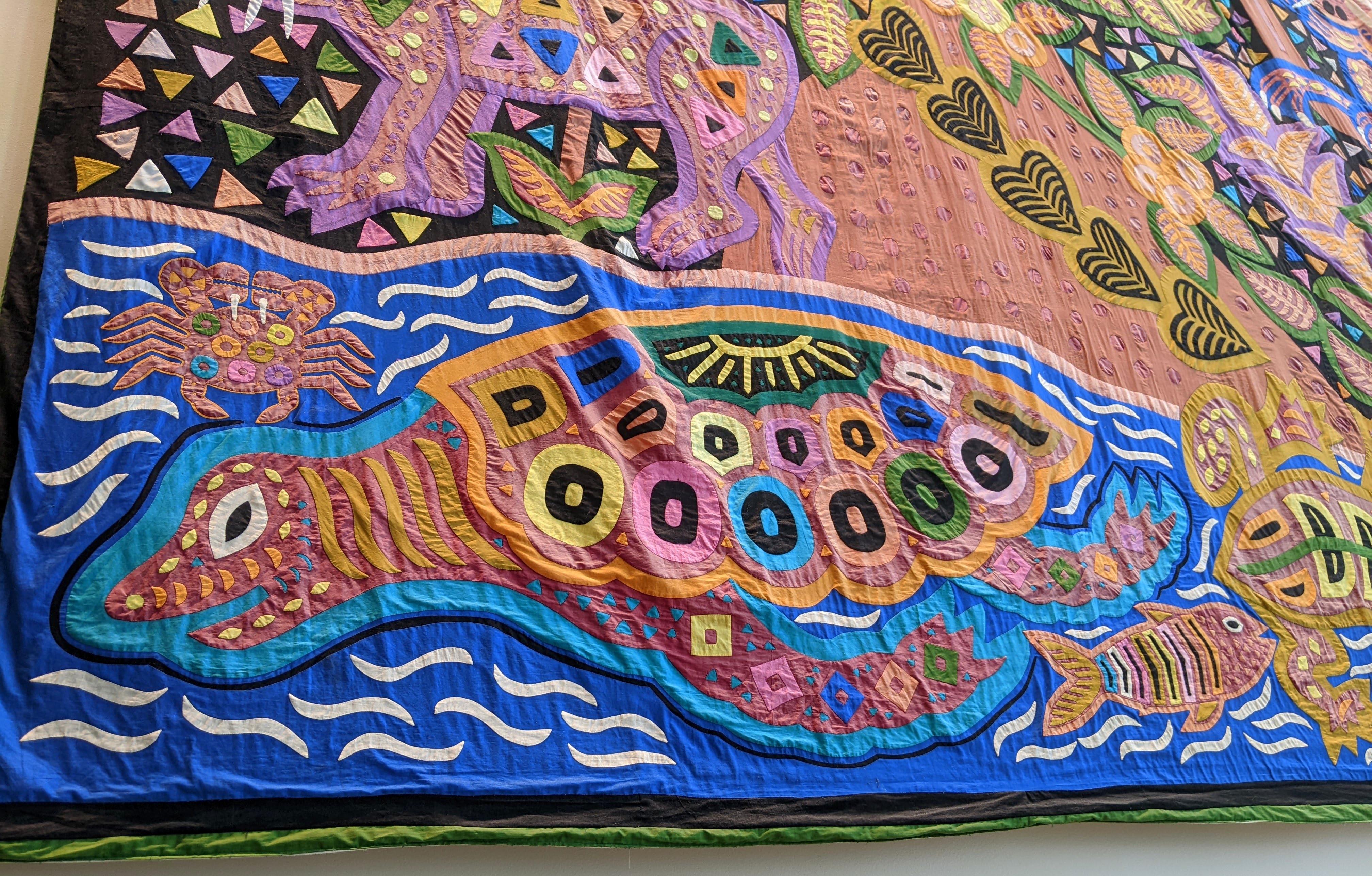 After spending some time with this iconic work, I entered the General Assembly lobby. What first caught my eye, on the right wall, was a monumental Mola Tapestry from Panama, made by unidentified Kuna women. (To learn about the art form, see my previous blog post from Lent 2022.)