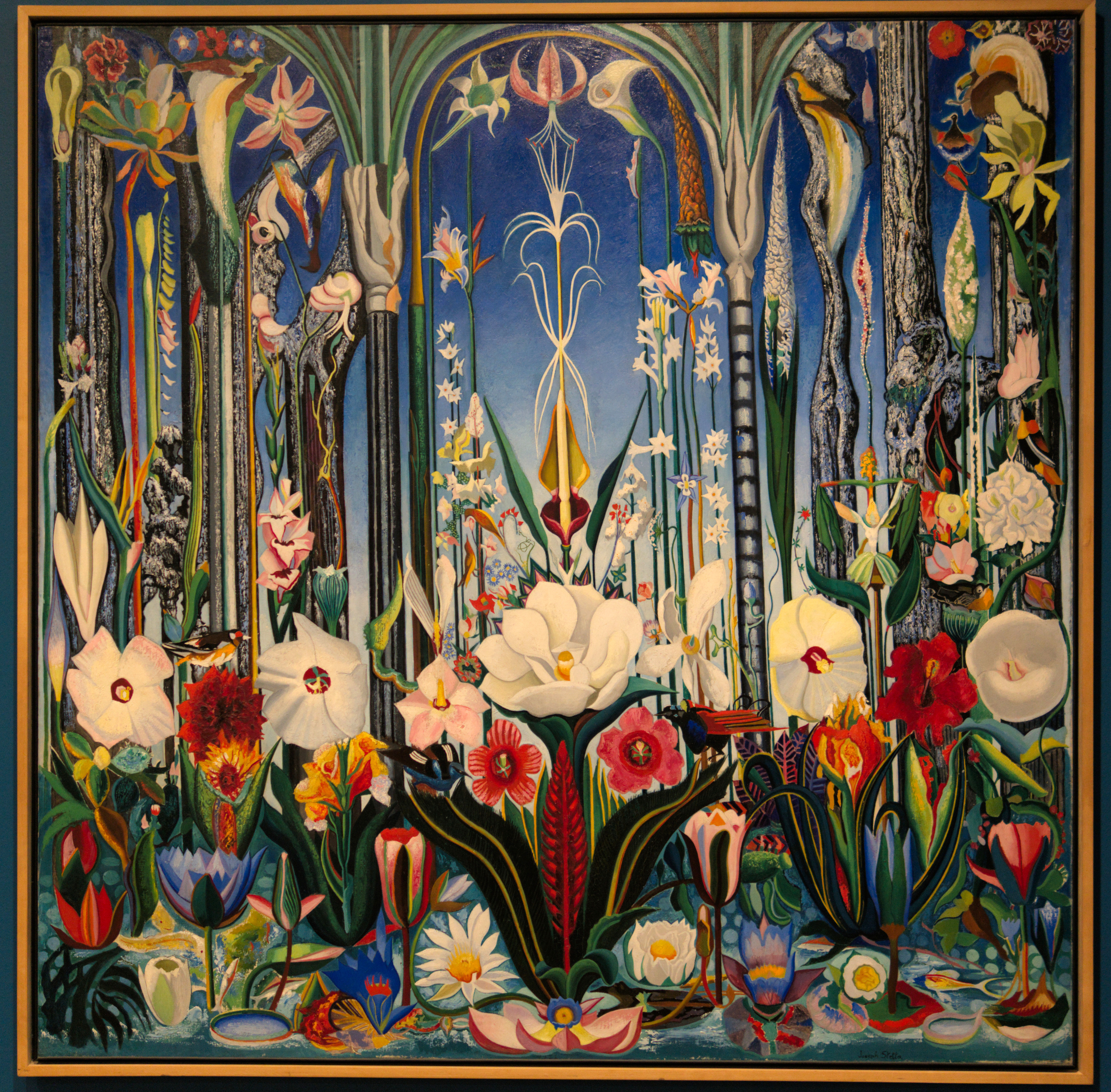 Joseph Stella (Italian American, 1877–1946), Aquatic Life (Goldfish), ca. 1919–22. Pastel on paper. American University Museum, Washington, DC. Photo: Victoria Emily Jones.Joseph Stella (Italian American, 1877–1946), Lyre Bird, ca. 1925. Oil on canvas, 54 × 30 1/8 in. (137.2 × 76.5 cm). Addison Gallery of American Art, Phillips Academy, Andover, Massachusetts. Photo: Victoria Emily Jones.Joseph Stella (Italian American, 1877–1946), Tree, Cactus, Moon, ca. 1928. Gouache on paper, 41 × 27 in. (104.1 × 68.6 cm). Reynolda House Museum of American Art, Winston Salem, North Carolina. Photo: Eric James Jones. [object record]Joseph Stella (Italian American, 1877–1946), Banyan Tree, ca. 1938. Oil on canvas, 36 1/2 × 31 1/2 in. (92.7 × 78.7 cm). Myron Kunin Collection of American Art, Minneapolis, Minnesota. Photo: Victoria Emily Jones.