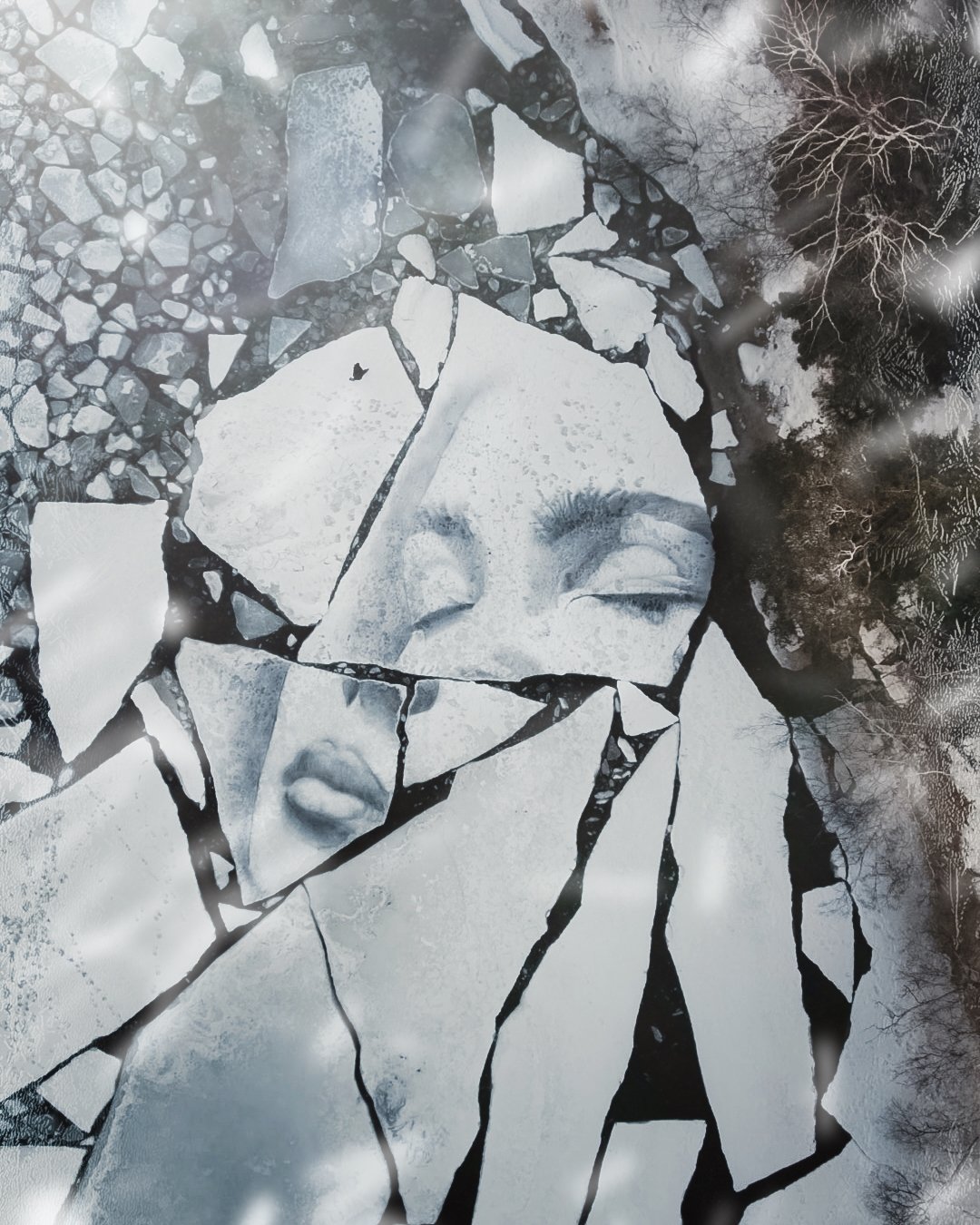 ART PROJECT: Fractured by David Popa: “Fractured is a project located on various ice floes in southern Finland. By use of only earth, charcoal and the source water, a series of portraits were created on fractured ice floes that remained for only a brief time. The pieces were documented via aerial drone video, photography and photogrammetry and hold a tactile form as limited-edition prints as well as in digital form through 1/1 NFTs. The project evolved as a response to the ongoing conflict in Ukraine, which has only further highlighted the fractured state of the world in which we live. During the project, the ice fractured completely unexpectedly at unpredictable times, leaving the artist at odds as to whether continuing the work was even worthwhile. From the ground, one would never be able to decipher any silver linings within the chaos; however, from above, the fragments hold a harmony and beauty that is imperceptible from any other perspective. The work offers a means to point the viewer not to despair and chaos, but rather questions where we must look to mend the broken fragments of our lived reality and perhaps how the fragments can be used to create an entirely new mosaic from the scattered vestiges.”