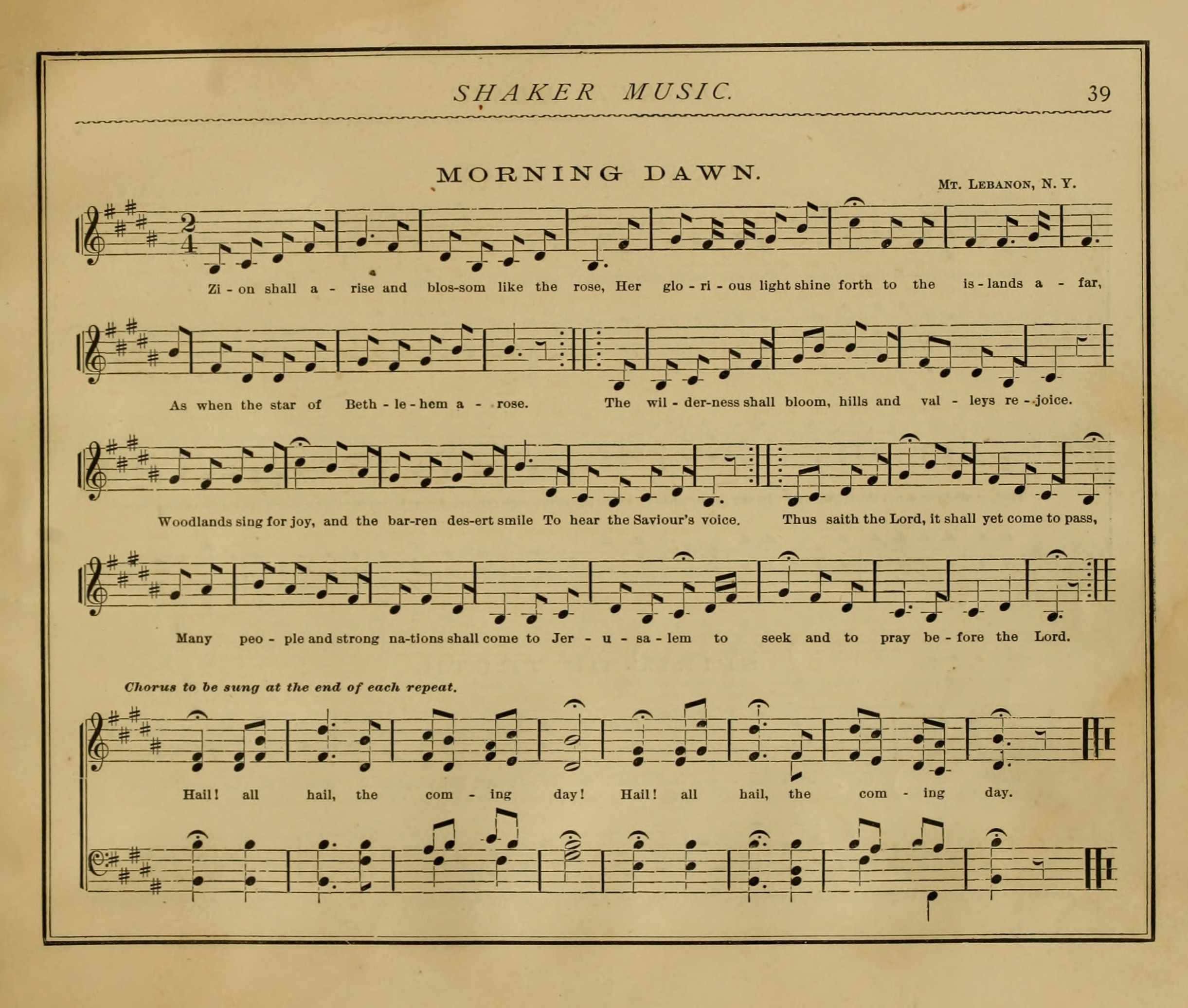 LISTEN: “Morning Dawn,” a Shaker hymn from New Lebanon, New York, 19th century | Performed by The Rose Ensemble on And Glory Shone Around: Early American Carols, Country Dances, Southern Harmony Hymns, and Shaker Spiritual Songs (2014)